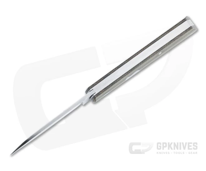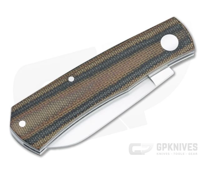 Handle: Stainless liners support contoured canvas Micarta covers for a solid and comfortable grip and plenty of visual appeal. The covers are attached with stainless pins and the liners are engine turned or jeweled for a truly custom feel. A solid stainless steel back spring protects the blade when closed and delivers snappy slip joint action for safe use. Includes a felt slip for storage and carry, nylon drawstring bag and signed Certificate of Authenticity.