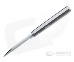 Handle: Stainless liners support contoured Richlite covers for a solid and comfortable grip. The covers are attached with stainless pins and the liners are engine turned or jeweled for a truly custom free. A solid stainless steel back spring protects the blade when closed and delivers snappy slip joint action for safe use. Includes a felt slip for storage and carry, nylon drawstring bag and signed Certificate of Authenticity.