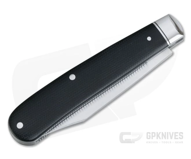 Handle: Â Rugged yet stylish Black Canvas Micarta covers are fit to grooved and pinched, polished stainless steel bolsters which are precision fit to the stainless steel liners. Delivering a truly custom feel the blade side liners have a coined edge with added file work on the inside of the back spring. Stainless pins are used to secure the covers and the display side has a stainless shield for a timeless feel. The back spring is smooth and solid with half-stop action and sits flush in all three positions.