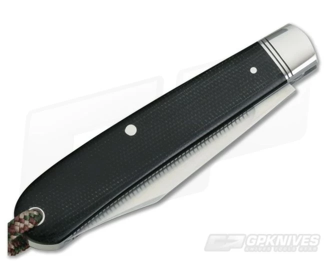 Handle: Â Handsome and rugged Black Canvas Micarta covers are fit between grooved, satin finished, stainless steel bolsters which are integral to the stainless steel liners. Delivering a truly custom feel the blade side liners have a coined edge with added file work on the inside of the back spring. Stainless pins are used to secure the covers and the display side has a stainless shield for a timeless feel. The back spring is smooth and solid with half-stop action and sits flush in all three positions.