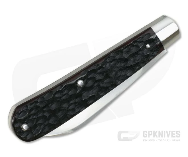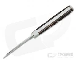 Handle: Â Dark jig bone covers are fit to polished stainless steel bolsters, all precision fit to the stainless steel liners. Smooth polished liners and file work on the inside of the back spring offer a truly custom feel. Stainless pins are used to secure the covers and the display side has a stainless arrowhead shield for a timeless feel. The back spring is smooth and solid with half-stop action and sits flush in all three positions.