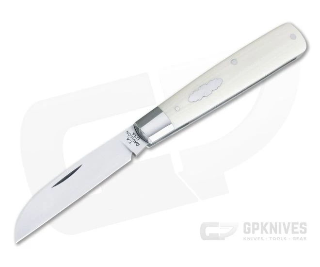Todd Davison provides custom, traditional slip joint pocket knives that are truly handmade and one of a kind. Having produced over 1800 slip joint knives, Davison utilizes premium materials and offers exceptional quality and attention to detail in a timeless, traditional design. #1934 comes with CPM-154 liners, shield and bolsters and a hand rubbed satin Sheepsfoot blade of A2 tool steel with Ivory White G10 covers.
