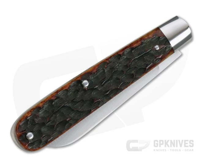 Handle: Â Timeless, rugged jigged bone covers are fit to satin finished, stainless steel bolsters which are precision fit to the stainless steel liners. Offering a handsome, classic look, the jigged bone handles are dyed a warm ‘antique’ red. Delivering a truly custom feel is the subtle detail of file work on the inside of the back spring. Stainless pins are used to secure the covers and the display side has a stainless shield for a timeless feel. The back spring is smooth and solid with half-stop action and sits flush in all three positions.