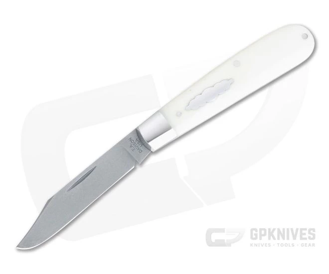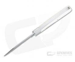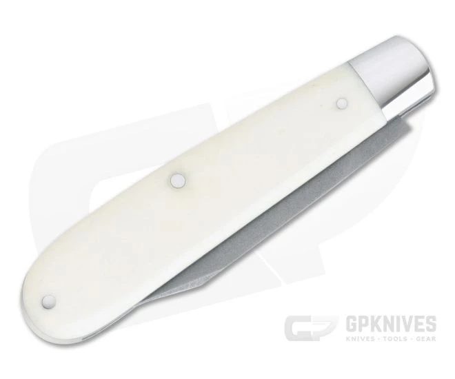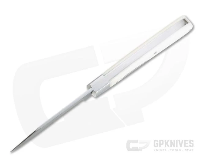 Handle: Â Handsome and stylish Smooth White Bone covers are precision fit to the stainless steel liners and bolsters. Bolsters and liners are mirror polished with file work on the inside of the back spring for a truly custom feel. Stainless pins are used to secure the covers and the display side has a stainless ‘Keyhole’ shield for a timeless feel. The back spring is smooth and solid with half-stop action and sits flush in all three positions.