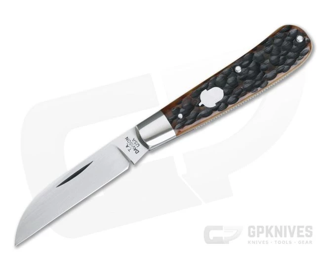 Todd Davison produces custom, traditional slipjoint pocket knives that are truly handmade and one of a kind. Having produced over 1600 slip joint knives, Davison utilizes premium materials and offers exceptional quality and attention to detail in a timeless, traditional design. This Swayback model comes with a CPM-154 Wharncliffe blade in a hand-rubbed satin finish with stainless steel liners and bolsters and Dark Brown Jigged Bone covers.