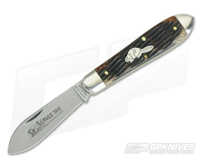 The Handle:Â Cherry wood handle scales have been jigged for texture, smoothed and fitted perfectly between two nickel silver bolsters. The pattern is rugged and truly a delight. The bullet end does its best spear point impression mimicking its sharp companion as best it can. All nickel silver is polished on this one including the Beaver Shield. Brass liners and pins round out construction.