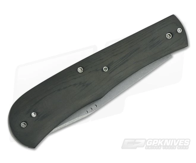 Handle:Â Offering a blend of modern and traditional design the handle is comprised of a steel back spring, blasted titanium liners and uni-directional carbon fiber handle scales all held together with titanium Torx hardware. Uni-directional carbon fiber has a wood grain look that lends itself to this design. The slip joint operation has a solid half stop operation for safety. The large, classic handle profile is comfortable during periods of extended use while maintaining a slim, easy to carry profile.