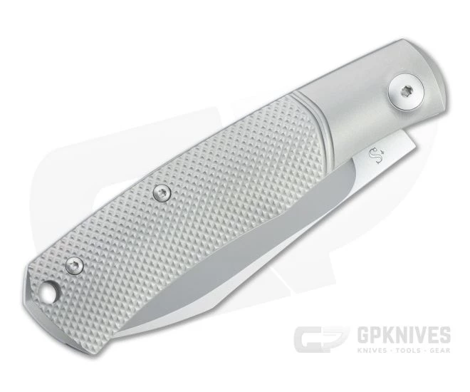 Inspired by Jared Oeser’s custom Native, French custom knife maker Sacha Thiel created his first slip joint, the Birdy, elaborating on Oeser’s design. The sleek, stylish lines of the handle look and feel great, and the modified Wharncliffe blade gives the knife an aggressive appearance and functional performance. The Viper Hug is a high quality Italian production of this custom design. This version comes with a satin finished Bohler M390 blade and “Geometric” textured titanium handles.