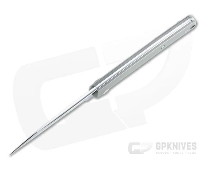 Handle:Â A crowned stainless steel back spring matches the spine of the blade and is fit securely between two slabs of contoured matte gray titanium. The handle design provides a secure, comfortable grip with good heft in the hand from the durable titanium. A hole at the pommel allows for lanyard attachment.