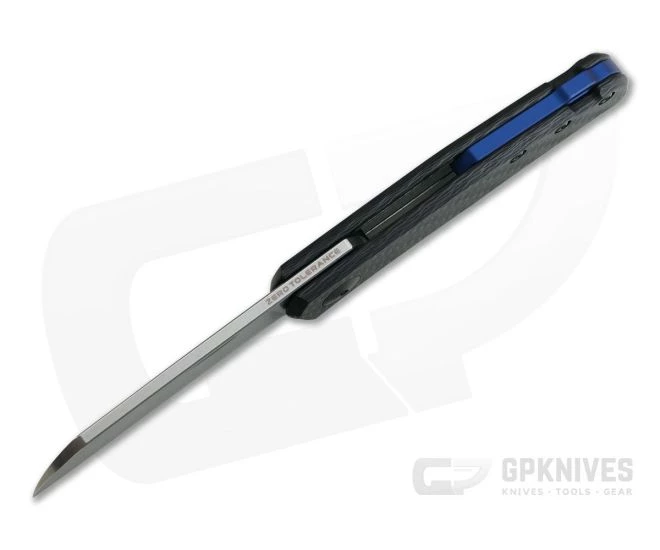 Handle:Â Carbon fiber handle scales make this an exceptionally light and easy to carry knife. Housed inside the scales are steel liners with the double detent, slip joint mechanism along with a blue anodized, Anso-style backspacer with integrated lanyard attachment for carry.